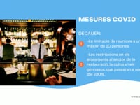 Canvien les mesures COVID a partir d'avui. Entre d'altres cauen les limitacions en reunions i aforaments, i es deixa d'aplicar el passaport COVID en la restauració i l'esport. L'oci noctur continuarà tancat.